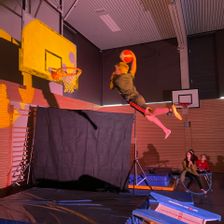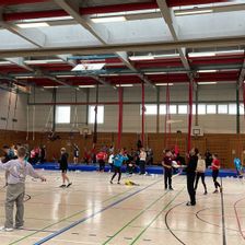 Direkt weiter ging es mit Besuch von dem ehemaligen Mozzarella-Artisten Lukas. Inzwischen sitzt Lukas zwar nicht mehr an den Holztischen im Klassenzimmer unserer Schule, sondern baut selbst Tische aus Holz, aber seine Leidenschaft fürs Jonglieren hat er nicht verloren! So durften wir gemeinsam mit ihm beeindruckende Jonglage- Formationen ausprobieren und uns unzählig viele Bälle durch die Halle zuwerfen. Danke, Lukas!