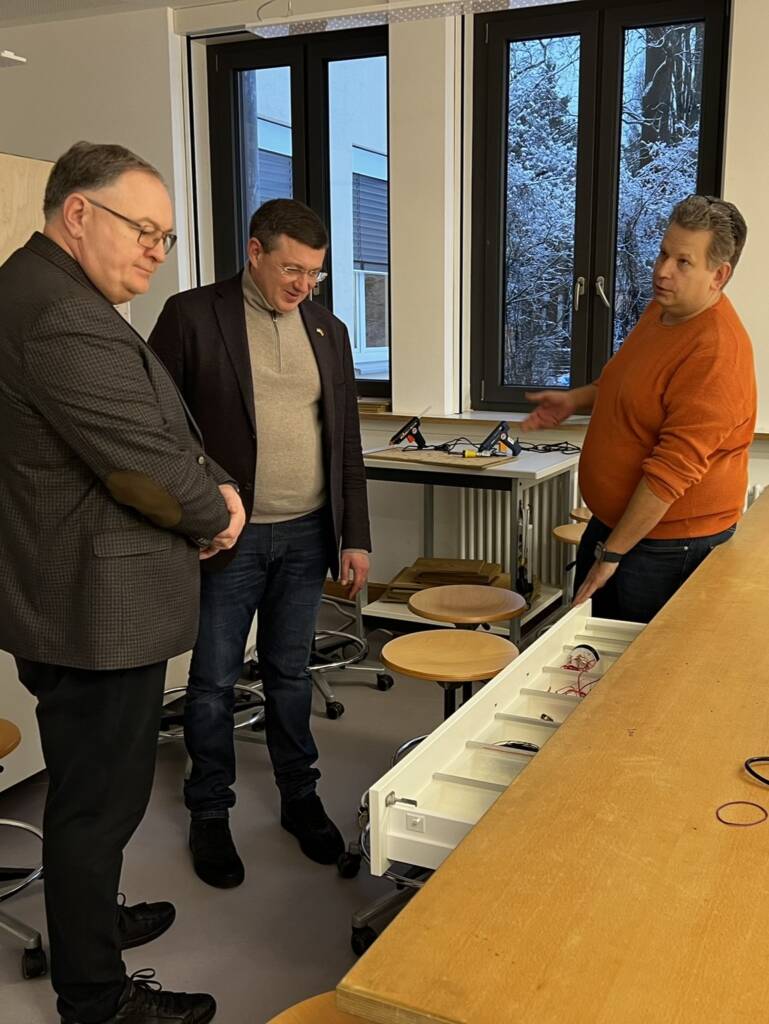 Mic – Bereits an zwei Schulfesten sammelte die Schulfamilie des MTG Spenden für Browary, eine ukrainische Stadt in der Nähe Kiews. Die Spenden kamen dort einer Schule zugute, die dringend einen Luftschutzbunker benötigte. Am 19.01.2024 durften wir am MTG Browarys Oberbürgermeister sowie den Schulleiter der Schule empfangen. Schülersprecherin Annika Amberg führte die Delegation durch das Schulhaus, wobei diese nicht nur Einblick in reguläre Klassenzimmer, sondern auch in die Labore und ins Theater erhielten, sodass bei den Gästen ein Eindruck vom Schulleben am MTG entstehen konnte. Der ukrainische Schulleiter bedankte sich herzlich für die Spenden, die den Bau des Luftschutzbunkers ermöglicht hatten und ein Fortbestehen des Schullebens in Browary ermöglichten. Wir hoffen dennoch gemeinsam mit unseren Gästen, dass der Schulalltag bald keinen Bunker mehr einschließt.