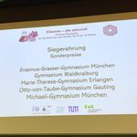 Das MTG kann bekam auf Grund der fünf engagierten Schülerinnen und Schüler einen Sonderpreis für die höchste Anzahl an Teilnehmenden einer Schule.